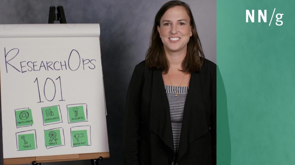Sumário: a prática de Operações de Pesquisa (ResearchOps) foca em processos e medidas que apoiam os pesquisadores em planejamento, condução e aplicação de pesquisas de qualidade em escala.